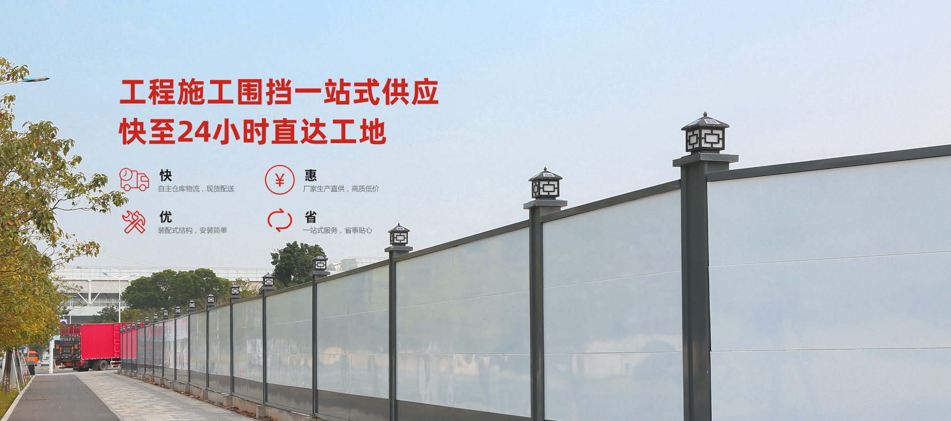 旭東施工圍擋,在建筑領域廣獲客戶好評,具有自主技術優(yōu)勢的裝配式圍擋A款、鋼結構圍擋C款、PVC圍擋和定制圍擋等產(chǎn)品,廣泛應用于房屋、路橋和地鐵等建設施工現(xiàn)場和項目部的周圍,是城市文明施工的一道安全屏障。
